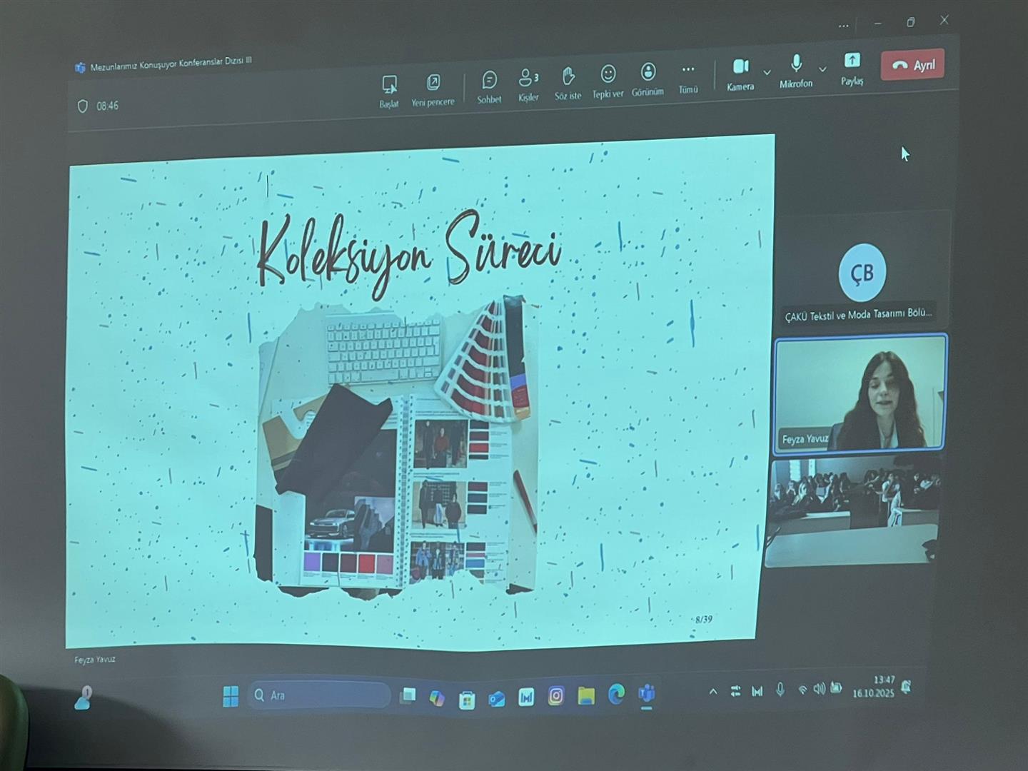 "Mezunlarımız Konuşuyor Konferanslar Dizisi” kapsamında, Doç. Arzu EVECEN moderatörlüğünde mezun öğrencimiz Feyza YAVUZ ile bir söyleşi gerçekleştirilmiştir. Söyleşide, mezunumuzun sektörde edindiği deneyimler, kariyer yolculuğu ve moda tasarımı alanındaki güncel gelişmelere ilişkin paylaşımları yer almış; öğrencilerimizin mesleki farkındalıklarının artırılmasına ve kariyer motivasyonlarının desteklenmesine katkı sağlanmıştır.