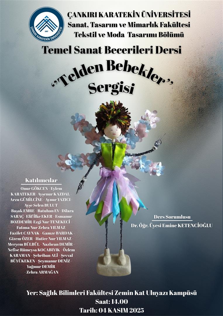 Dr.Öğretim Üyesi Emine KETENCİĞLU Koordinatörlüğünde; Tekstil ve Moda Tasarımı Bölümü öğrencilerinin Temel Sanat Becerileri dersi kapsamında hazırlamış oldukları telden bebeklerden oluşan sergi, 04-15 Kasım 2025 tarihlerinde üniversitemiz Sağlık Bilimleri Fakültesi Zemin Katta izleyicilerle buluşacaktır.